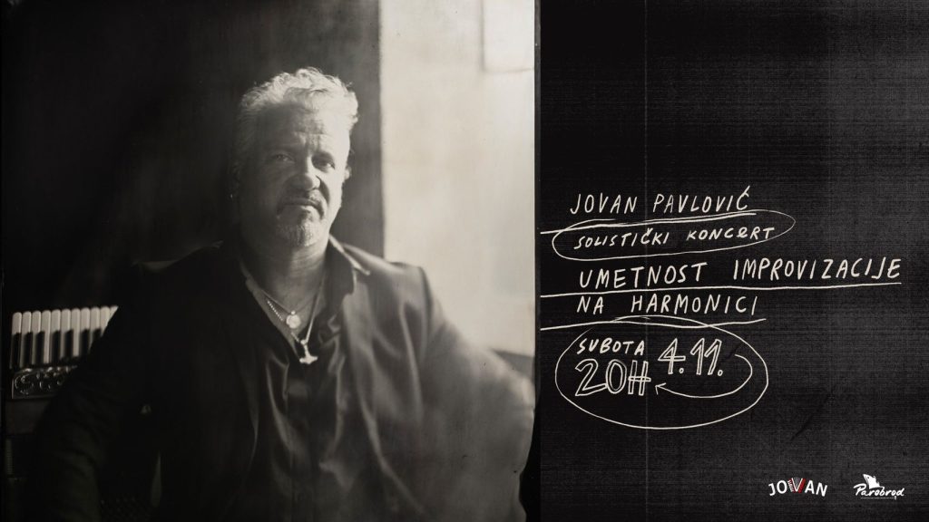 Jovan Pavlović, jedan od najpriznatijih harmonikaša današnjice koji skoro 30 godina živi i radi u Norveškoj, po prvi put nam u Beogradu predstavlja muziku sa svog autorskog solo albuma „Life on Accordion“. Muzički kritičari širom sveta ovaj album označavaju revolucionarnim na polju harmonike, a Jovanovu muziku i izvođenje kao nešto izvan okvira korišćenja ovog instrumenta.