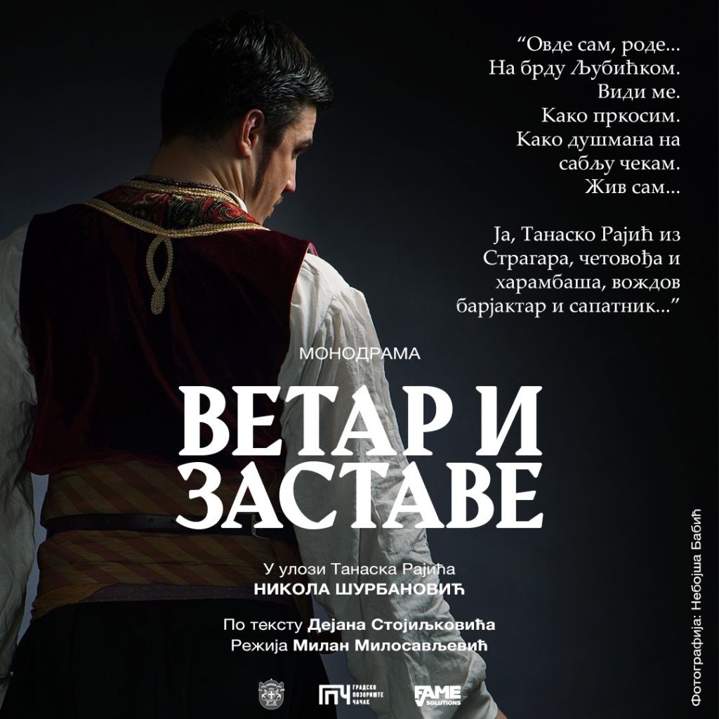 Jedan od najistaknutijih ustaničkih junaka, Karađorđev barjaktar i ustanički starešina Tanasko Rajić je rođen 1756. godine u selu Stragarima podno Rudnika poslužio je kao inspiracija našem proslavljenom piscu Dejanu Stojiljkoviću da napiše monodramu „Vetar i zastave“ za Gradsko Pozorište Čačak. Tanaska Rajića igra naš mladi glumac Nikola Šurbanović, dok je režija poverena Milanu Milosavljeviću.