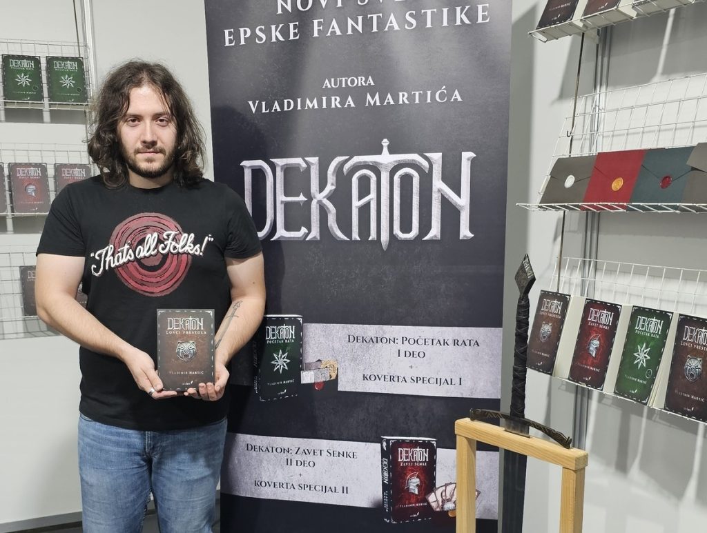 Međunarodni sajam knjiga u Beogradu već uveliko traje, a različiti izlagači predstavljaju svoja izdanja u nekoliko hala. Među njima je i Vladimir Martić, autor romana Dekaton. „Dekaton” je avanturistički koncipiran roman u kom se i pored mnogih misterija, zavera i pustolovina autor osvrće na porodične vrednosti, religijska pitanja, državničko upravljanje i ratne nevolje.