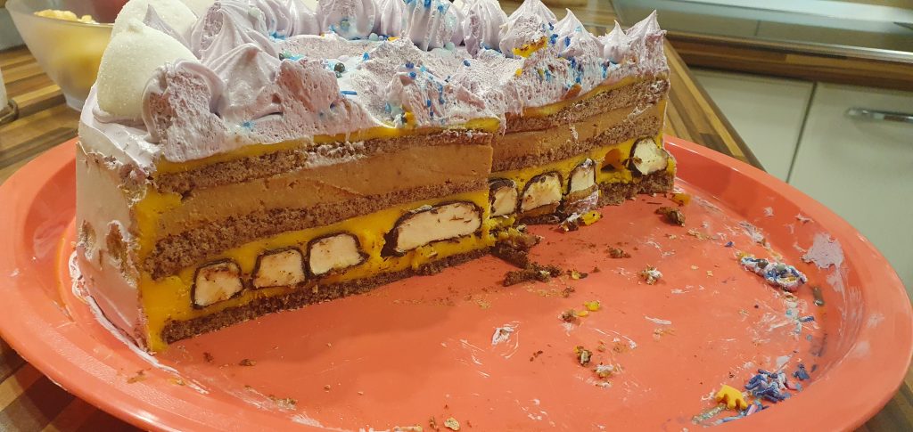 Kada dođe vreme za prirpemu torte za rođendane nekako se uvek pitam šta praviti a da bude dovoljno za sve. Prosto mi treba izdašna torta. I tako ti ja probam kod moje kone (komšinice) tortu koju je spremala ćerki za rođendan. Rekoh koja ti je ovo torta, kaže sa bananicama, uuu reko baš je fina! A vidim ima je, izdašna je i sve je kako deca vole. Ima keksa, bananica, fila, ma top. I tako ti i ja izaberem da pravim ovu tortu i eve ga recept: